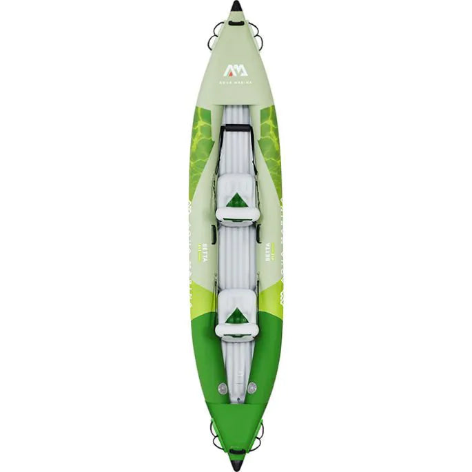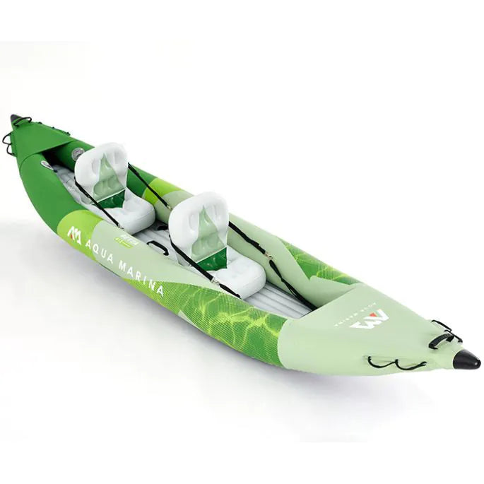The Aqua Marina Betta HM K0 is a two-person kayak specifically designed for beginners and even intermediate kayakers. It's often used on large lakes with calm water. The hard drop-stitch PVC makes this inflatable kayak extremely durable and ensures a long lifespan. You can easily transport and store the Aqua Marina Betta HM K0 using the included carrying bag. Furthermore, the kayak is exceptionally light, weighing just 13.5 kg.