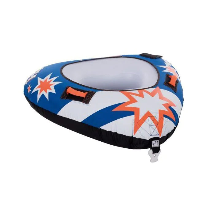 With this Funtube Flash, you'll be on the water in no time. Simply inflate the tube using the sturdy Boston valve. Then, quickly and easily attach the tube to the funtube line with the quick connector, and you're ready to go! A funtube line is not included with this tube.