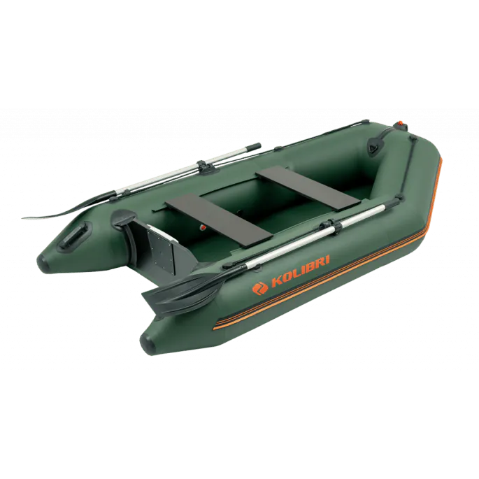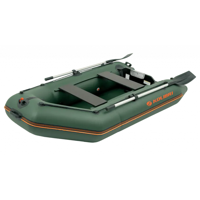 De Kolibri KM 260 is één van meest verkochte karperboten uit ons assortiment, en dat is niet voor niets. De Kolibri KM 260 biedt plaats aan twee volwassene en ruim 85KG bagage. De Kolibri KM 260 wordt geleverd met een lattenbodem. U kunt een boekvloer bijbestellen om de vloer extra stabiel te maken. De Kolibri KM 260 heeft een legergroene camouflage kleur zodat u niet opvalt tegen de kade, bomen en struiken. De KM-260 is uitgerust met een stevige watervaste houten spiegel die is afgewerkt met een stootvast PVC-profiel.